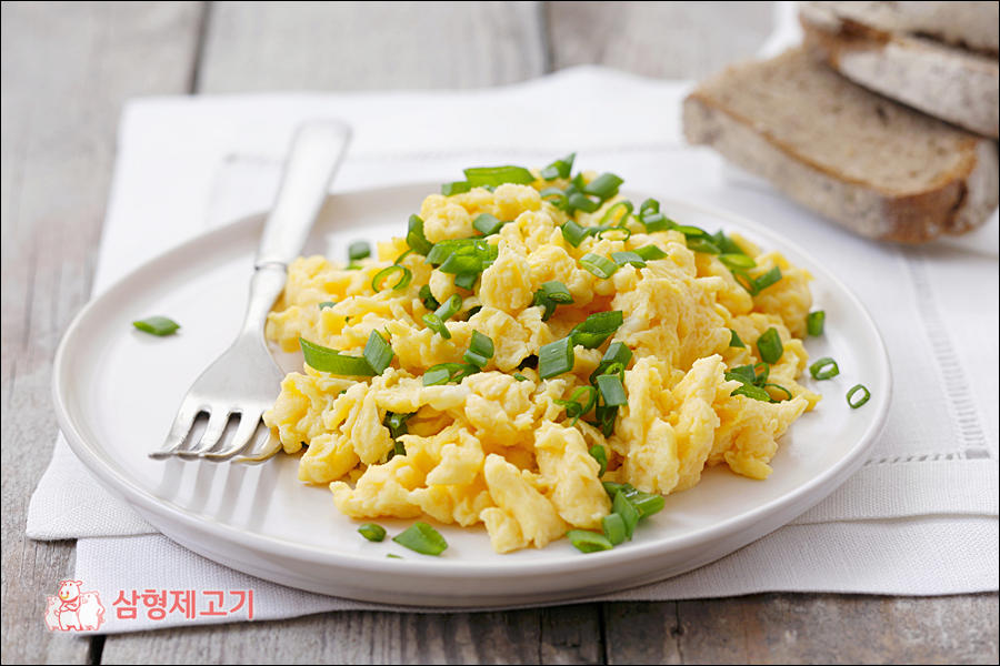 반숙으로 부드럽게 스크램블드에그를